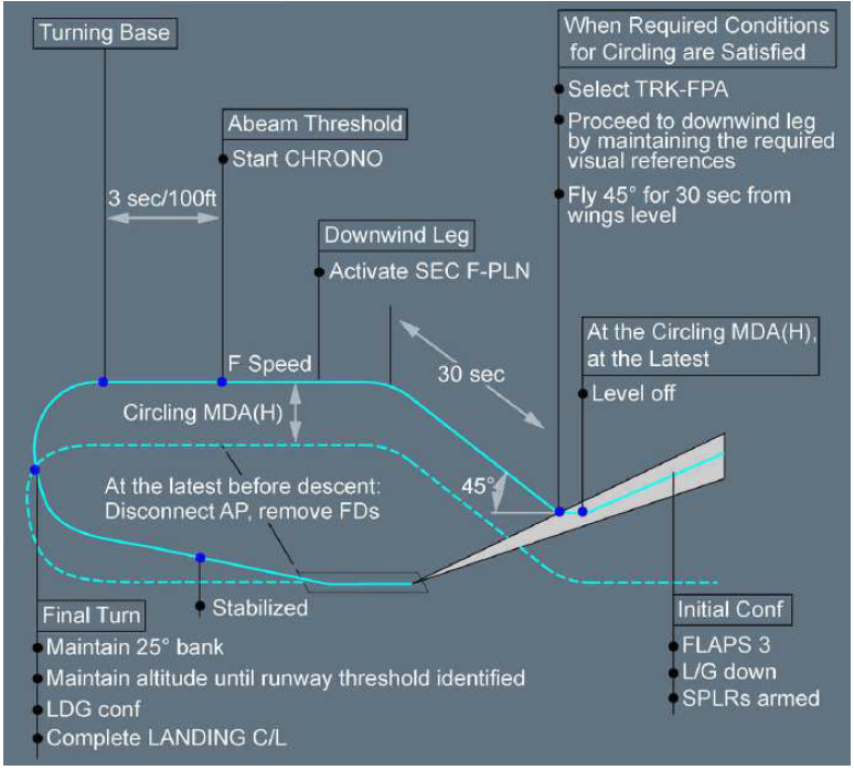 • Jika thrust lever tidak diset sesaat ke TOGA, FMS tidak akan mengaktifkan fase GO-AROUND, dan terbang di atas atau dekat bandara akan menyebabkan waypoint Destination di F-PLN ter-sequence.