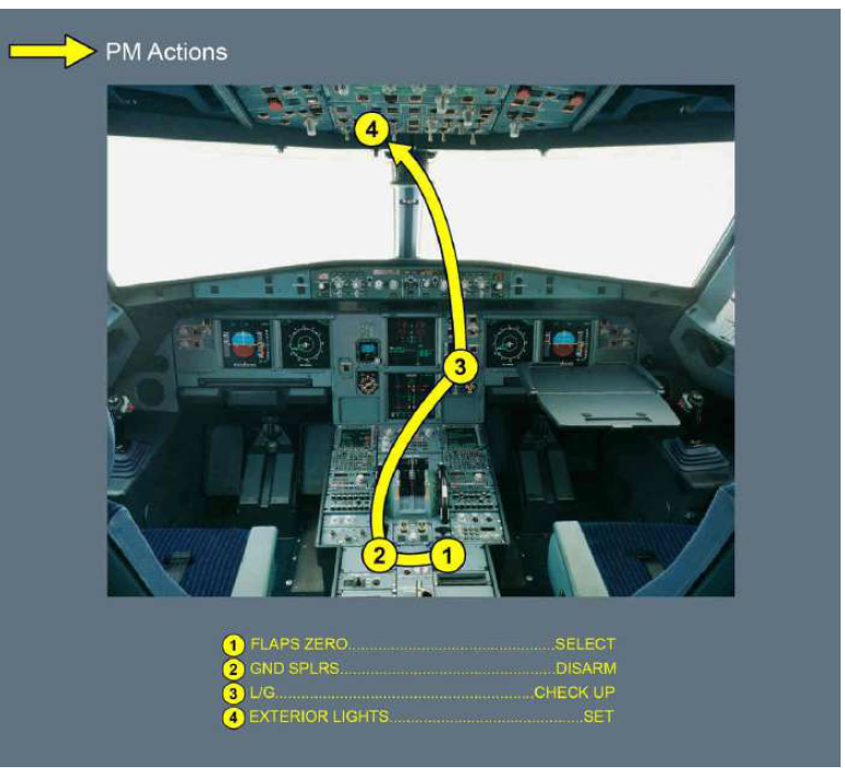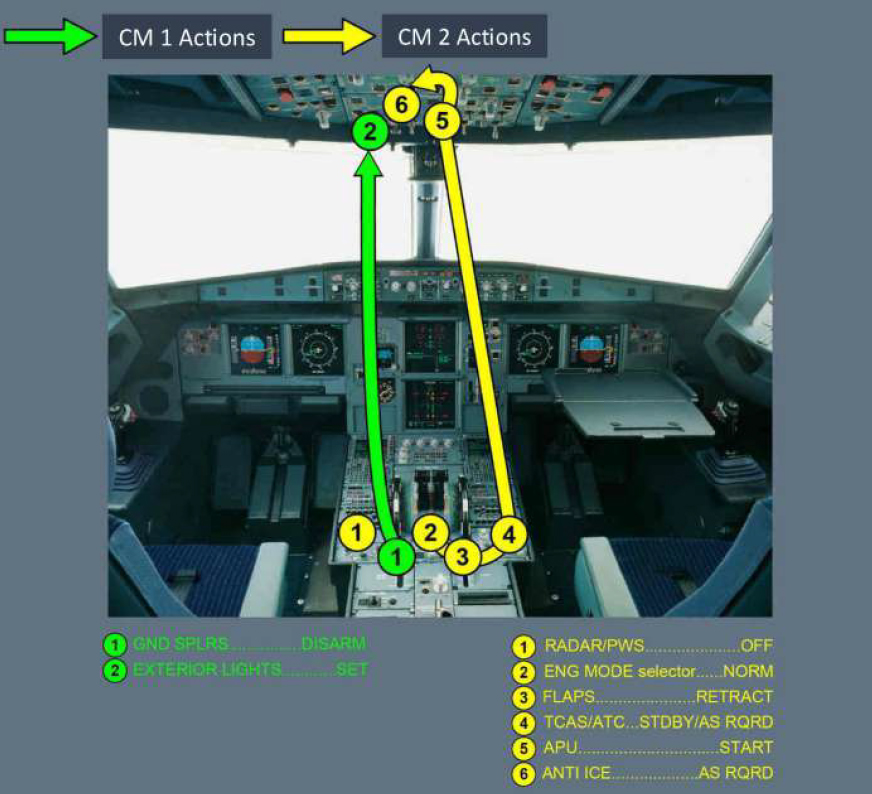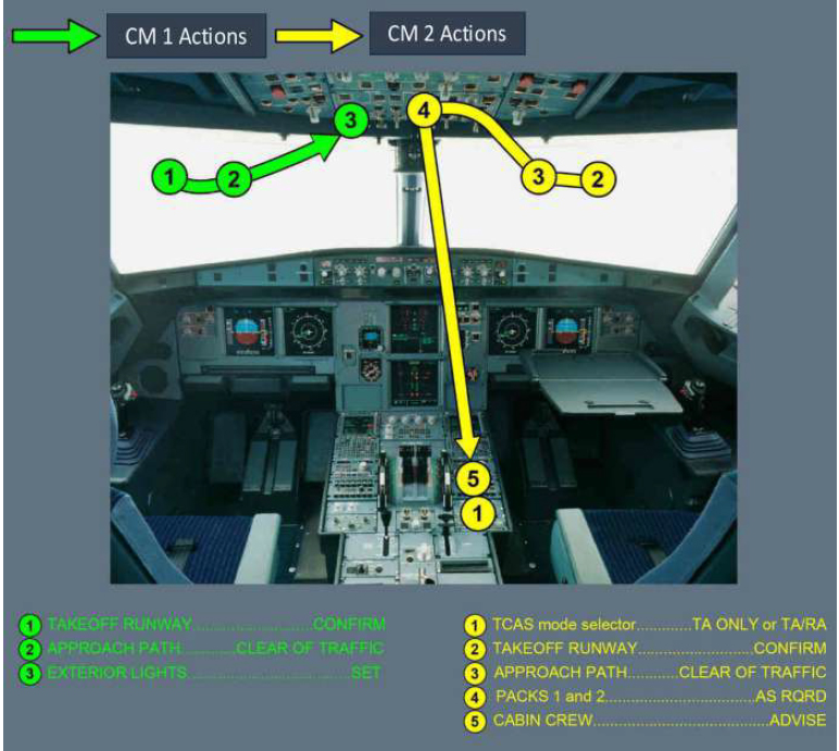 Item yang ditandai tanda bintang (*) adalah satu-satunya langkah yang harus diselesaikan setelah transit stop tanpa pergantian awak kokpit. Jika terjadi pergantian awak, maka seluruh item harus dilakukan oleh awak kokpit yang baru.